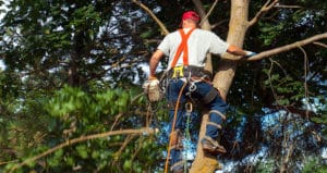 An Arborist Cutting Down a Maple Tree Piece by Piece