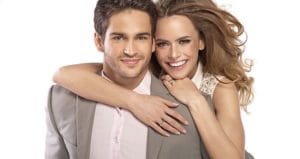 Delicate woman huging her husband