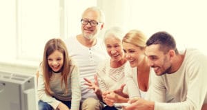 happy family watching tv at home