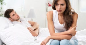 unhappy young couple in bedroom